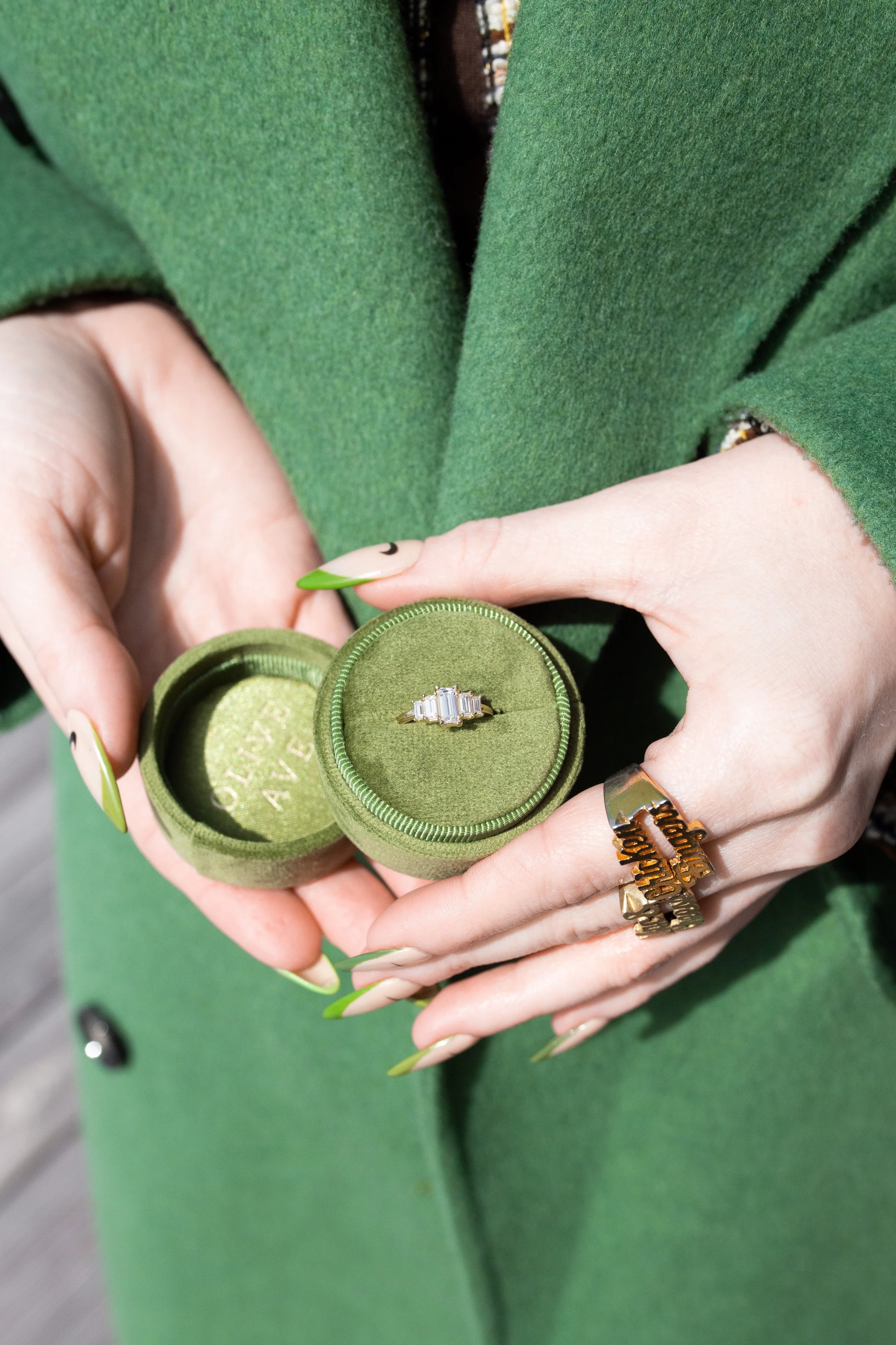 The ring is baguette style so it fits with Caitlyn’s food theme